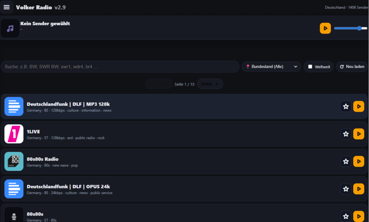Kleiner Web Radio Player. Einfach die HTML runter laden und auf das Handy oder Android Autoradio kopieren.